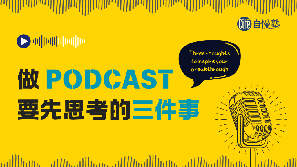 如果能在開始做 Podcast 前就先思考清楚這三件事,相信能幫助你在經營過程中少掉一些迷惘。如果一時之間沒有辦法想很清楚,在經營個過程中慢慢弄清楚自己希望呈現的樣子也很好。